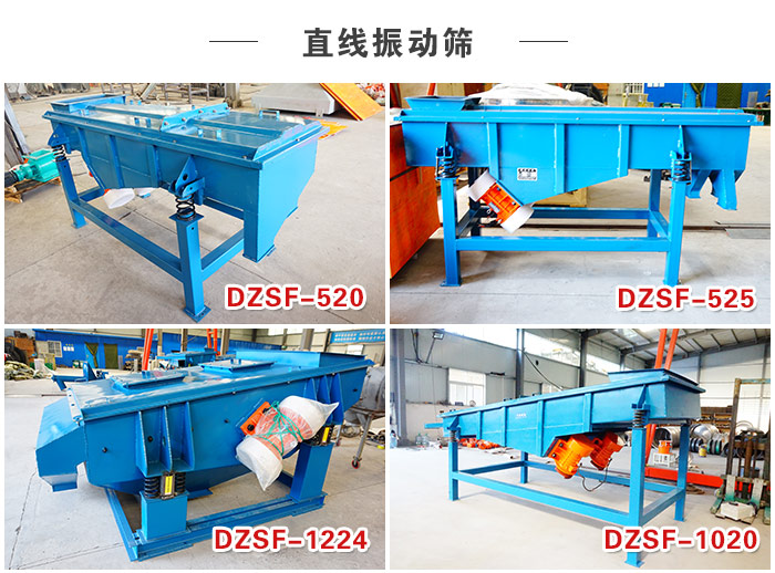 大漢機械生產的直線振動篩型號有多種(如:DZSF-520、DZSF-525、DZSF-1020、DZSF-1224、DZSF-1030、DZSF-1040等),每小時篩分可達500kg-3000kg之間,足夠滿足您的大產量需求!