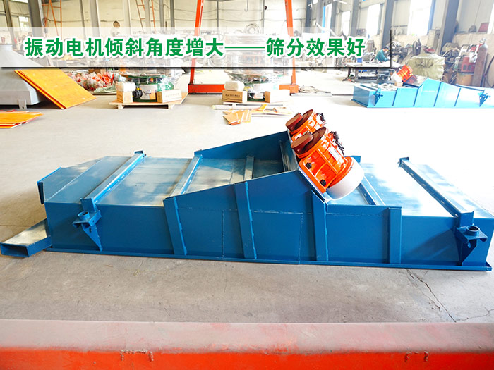 在振動電機的功率大小與振動篩型號匹配的情況下,振動電機的傾斜角度我們都采用標準角度:45度,如果增大傾斜角度篩,會使篩上物水平受力就會減小,簡單來說就是物料在篩面的上下跳動幅度會加高,物料向前運動的速度就會減慢,這樣就能達到精篩的效果,即篩分效果好。