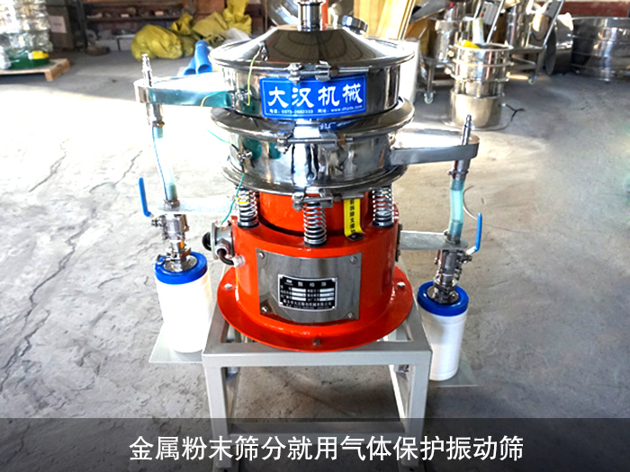 氣體保護振動篩是大漢機械研發的新型振動篩一般采用不銹鋼材質、氣體保護軟管、防靜電裝置等制作而成,它是我們大漢的產品。