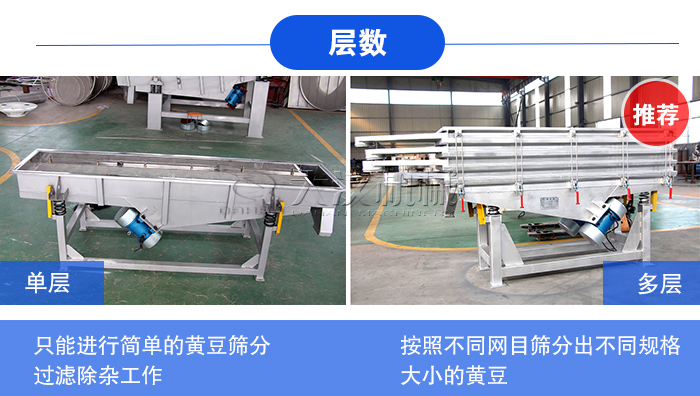 不同層數(shù)的不銹鋼直線篩篩分出來的效果也是不一樣的,單層只能進(jìn)行簡(jiǎn)單的黃豆篩分過濾除雜工作,而使用兩層及兩層以上篩網(wǎng)則可以按照不同網(wǎng)目篩分出不同規(guī)格大小的黃豆,所以在黃豆精選工作中,我們推薦您使用兩層以上的不銹鋼直線篩。