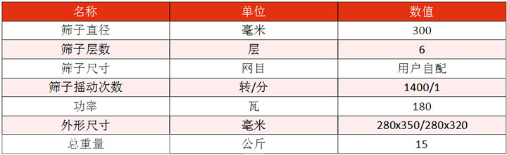產(chǎn)品簡介:電動振篩機(jī)是實驗室中比較常用的篩分設(shè)備,該機(jī)可以配合各種規(guī)格的方孔,圓孔標(biāo)準(zhǔn)套篩進(jìn)行使用,套篩從20-300目任選。